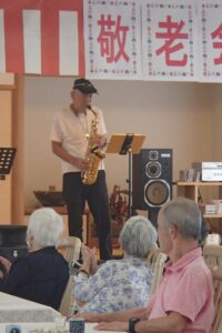 「虹」を営業されております、松井さんにお越しいただき、サックス演奏や歌にて歌謡曲等を